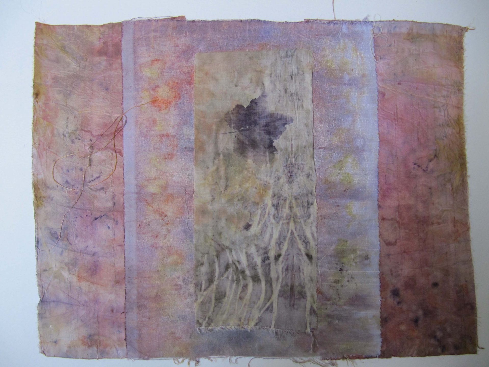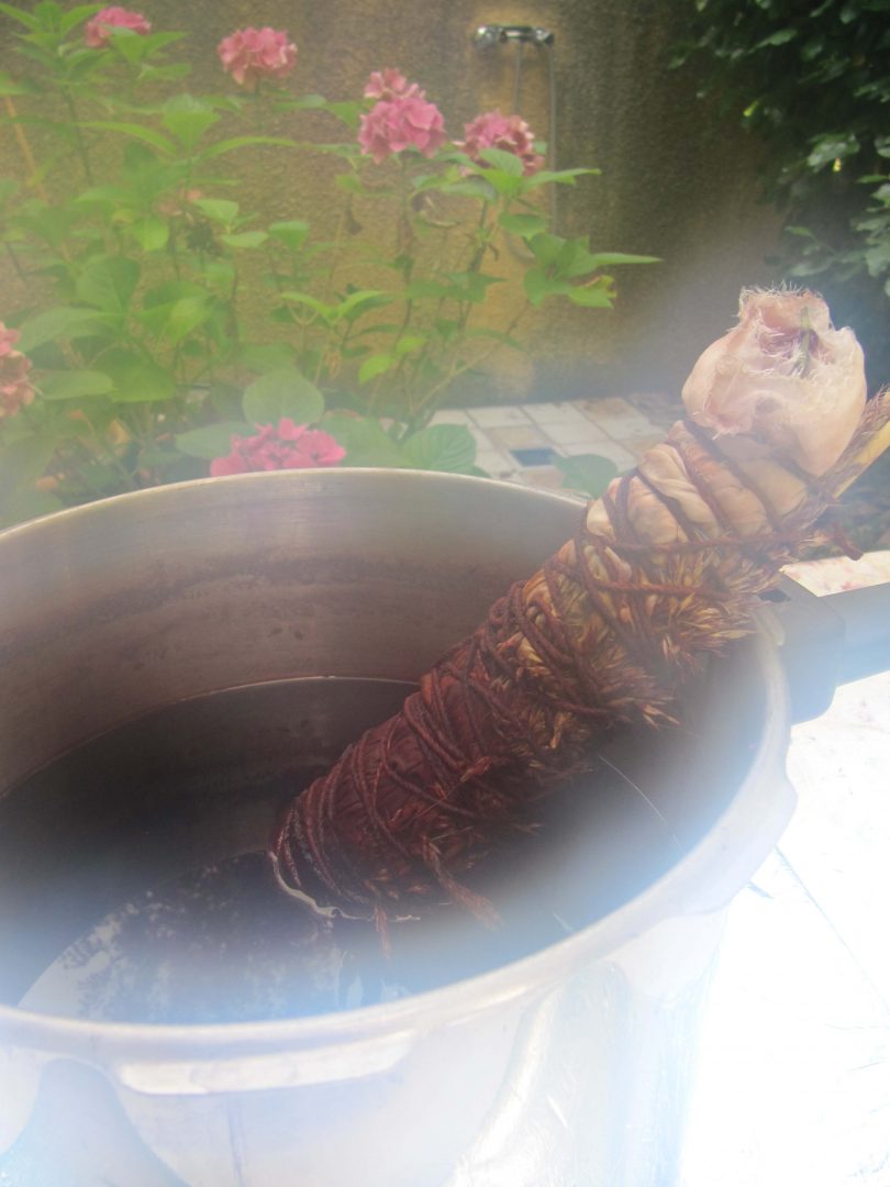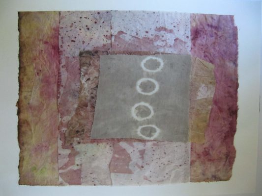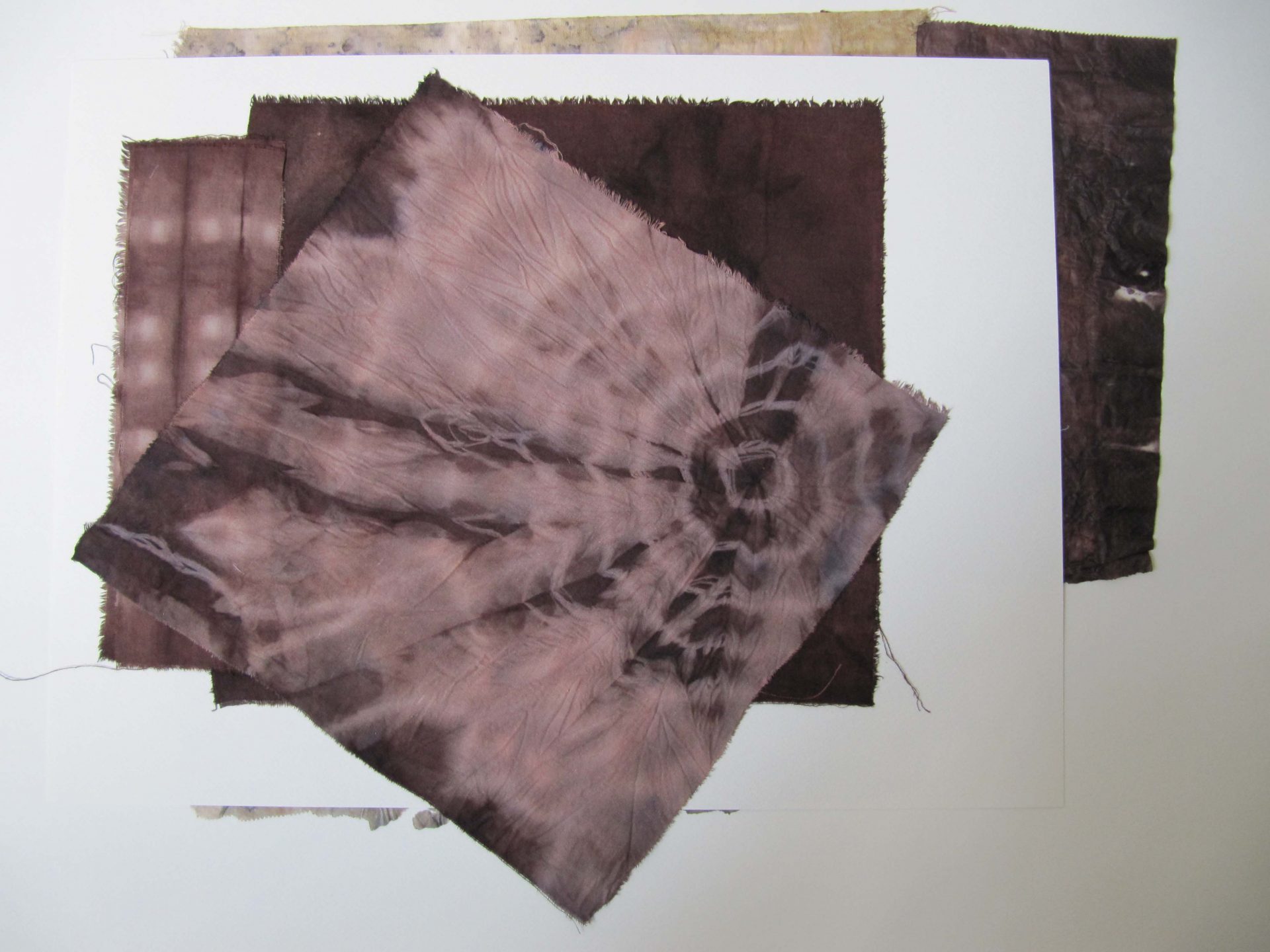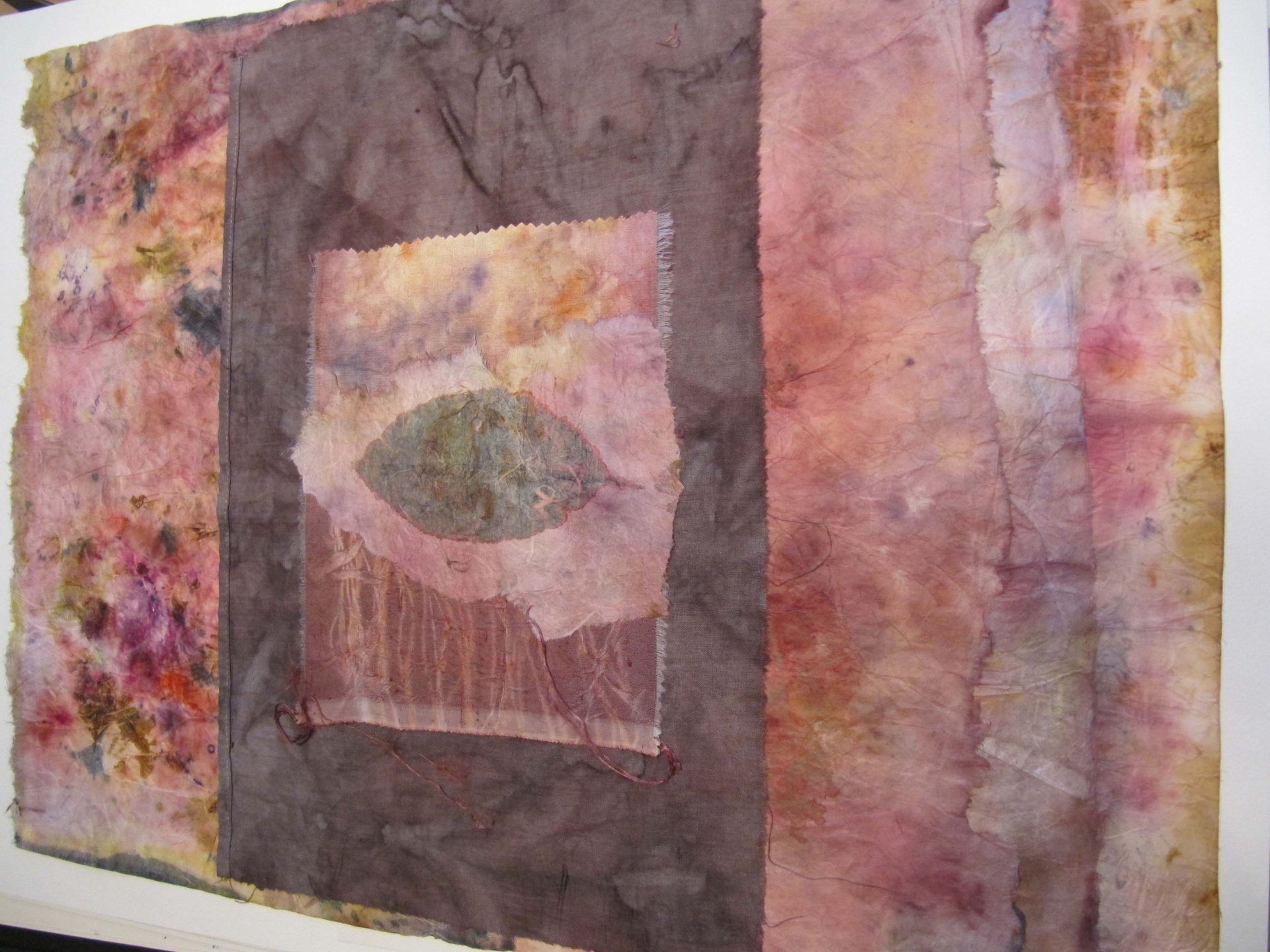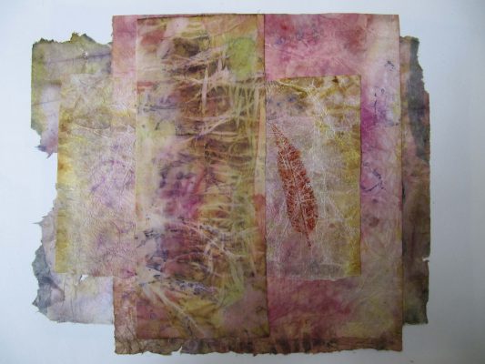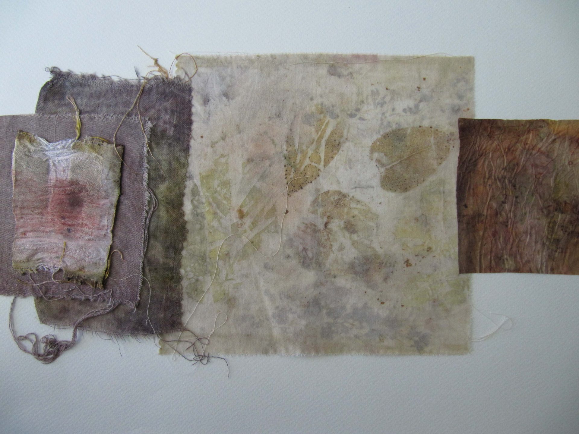 J’utilise des plantes tinctoriales par bains de teintures, shibori, éco-print, impressions, sur washi, soie, coton.